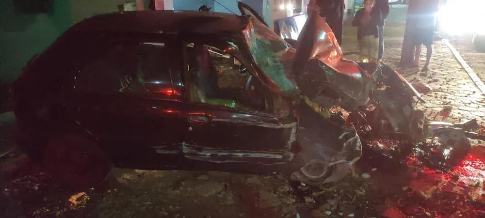 O desfecho da fuga aconteceu no Bairro Botafogo, quando o condutor perdeu o controle do veículo ao passar por uma lombada elevada. O carro colidiu violentamente contra a fachada de uma igreja, danificando parte significativa da estrutura frontal. O automóvel ficou completamente destruído.