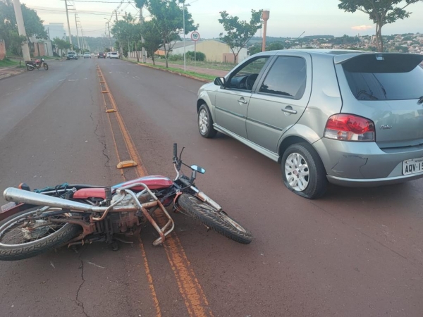 No início da noite desta segunda-feira, um acidente envolvendo um Palio e uma moto CG deixou um homem ferido na rua Capitão Leônidas Marques, em direção à avenida Maripá, na cidade de Toledo.