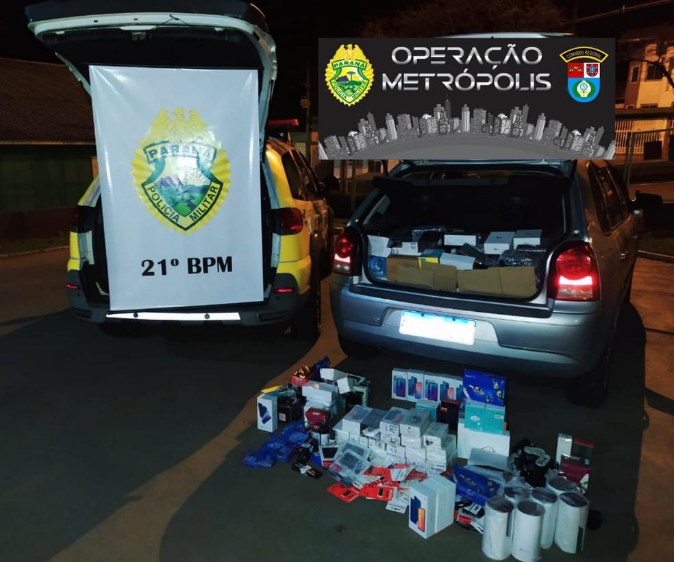 Ele foi abordado na PR-280, entre Marmeleiro e Renascença, no sudoeste, e disse, inicialmente, que os equipamentos tinham sido apreendidos pela Receita e que seriam entregues para uma entidade, mas não apresentou nenhum documento.