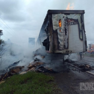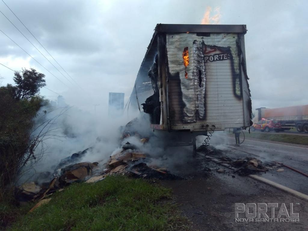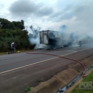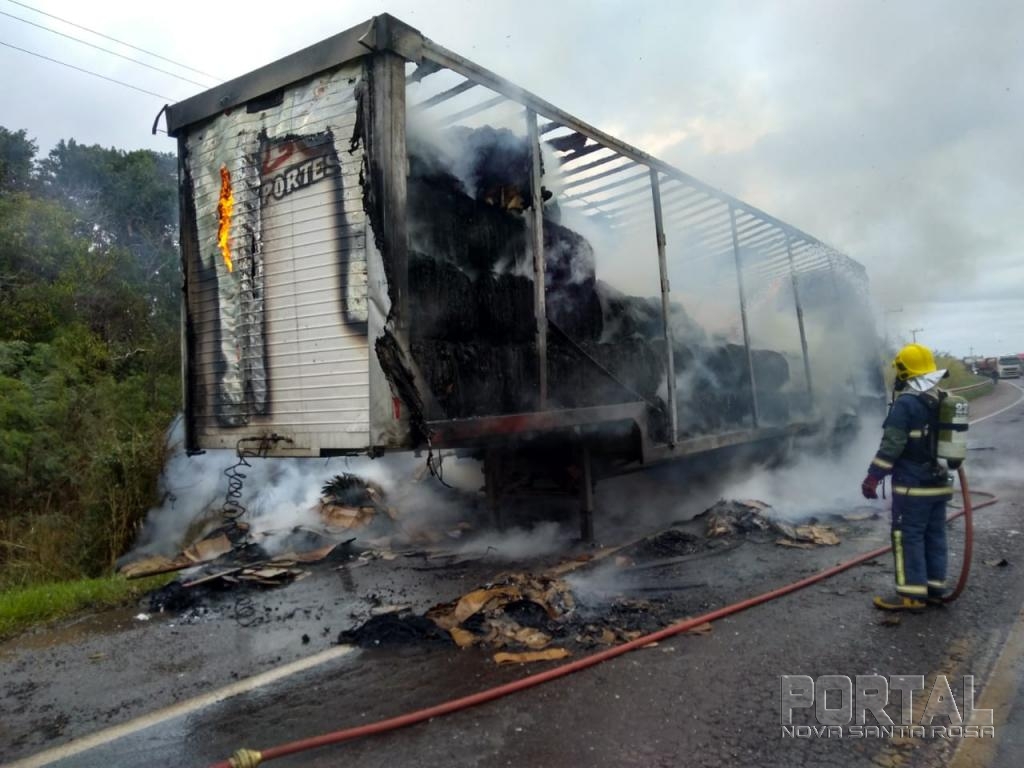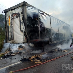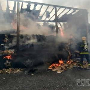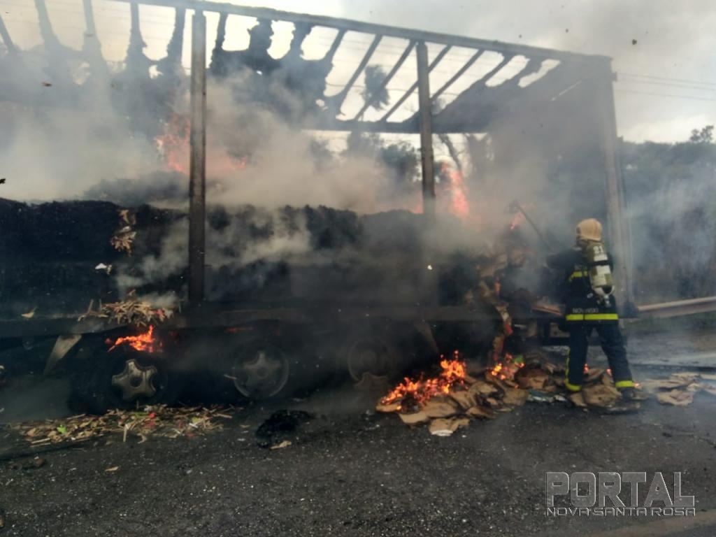 Um caminhão Ford com placas de Santa Catarina que puxava uma carreta furgão carregada com papelão ficou totalmente destruída pelo fogo, o veículo conduzido por Antônio Carlos Namor disse a nossa equipe de reportagem que seguia no sentido Marechal Cândido Rondon à Toledo quando percebeu que estaria saindo fumaça do furgão, imediatamente ele parou o caminhão no acostamento e reparou que tinha lavaredas de fogo.