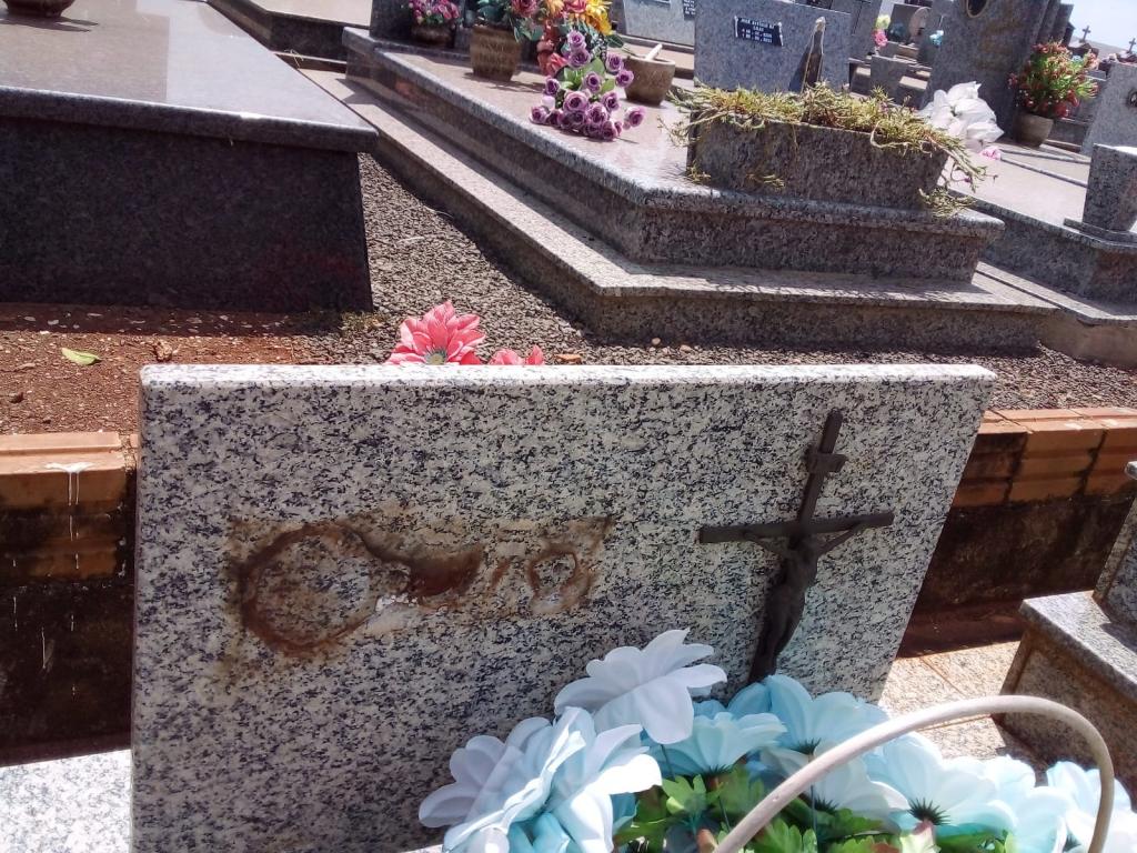 Um internauta do Portal Nova Santa Rosa enviou imagens de túmulos que tiveram placas e letras de bronze furtadas nos últimos dias no cemitério do município de Maripá.