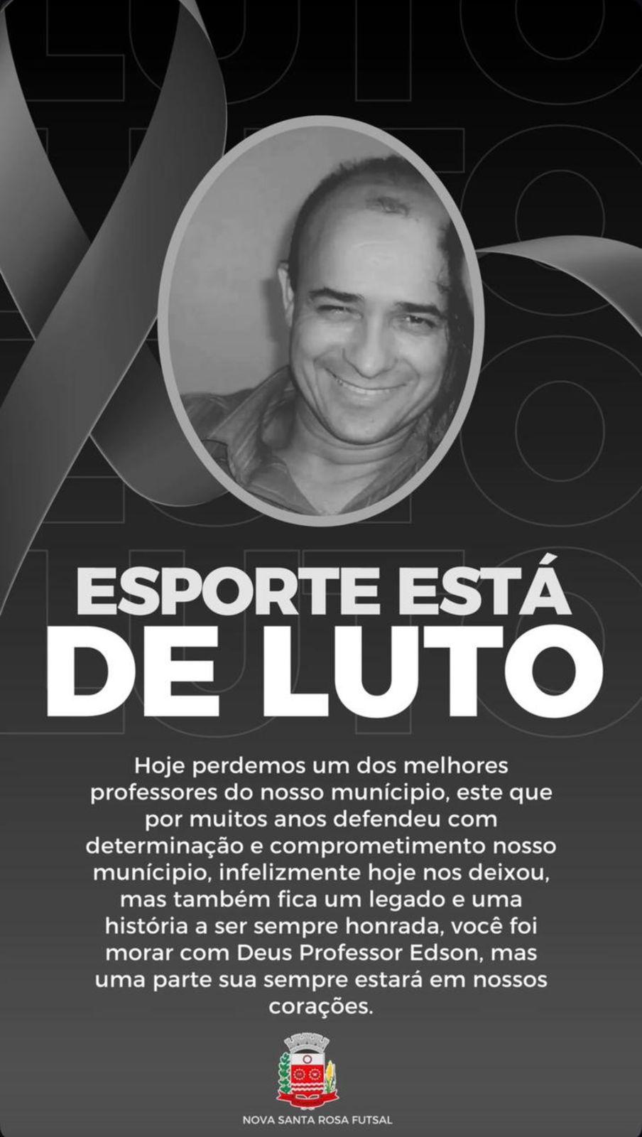 O Futsal de Nova Santa Rosa postou uma homenagem ao Professor Edson Gois que faleceu no início da manhã desta terça-feira (13).