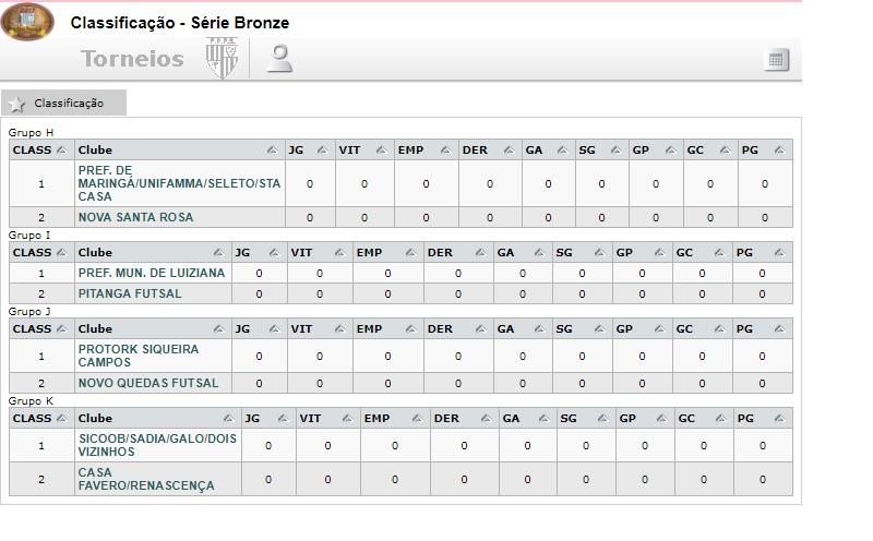 Nas outras Chaves se classificaram: Maringá, Novo Quedas Futsal, Luiziana, Renascença, Dois Vizinhos e o Pitanga Futsal.