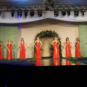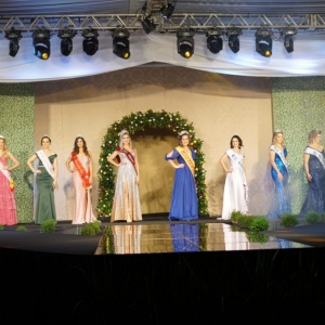 As jovens desfilaram em traje de gala e de banho. O tema do desfile foi o aniversário de 30 anos de emancipação do município de Mercedes.