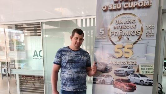 Gilmar Ceretta, do distrito de Luz Marina – São Pedro do Iguaçu foi o ganhador do primeiro veículo da campanha Um ano inteiro de Prêmios – 55 anos, 55 prêmios ACIT.