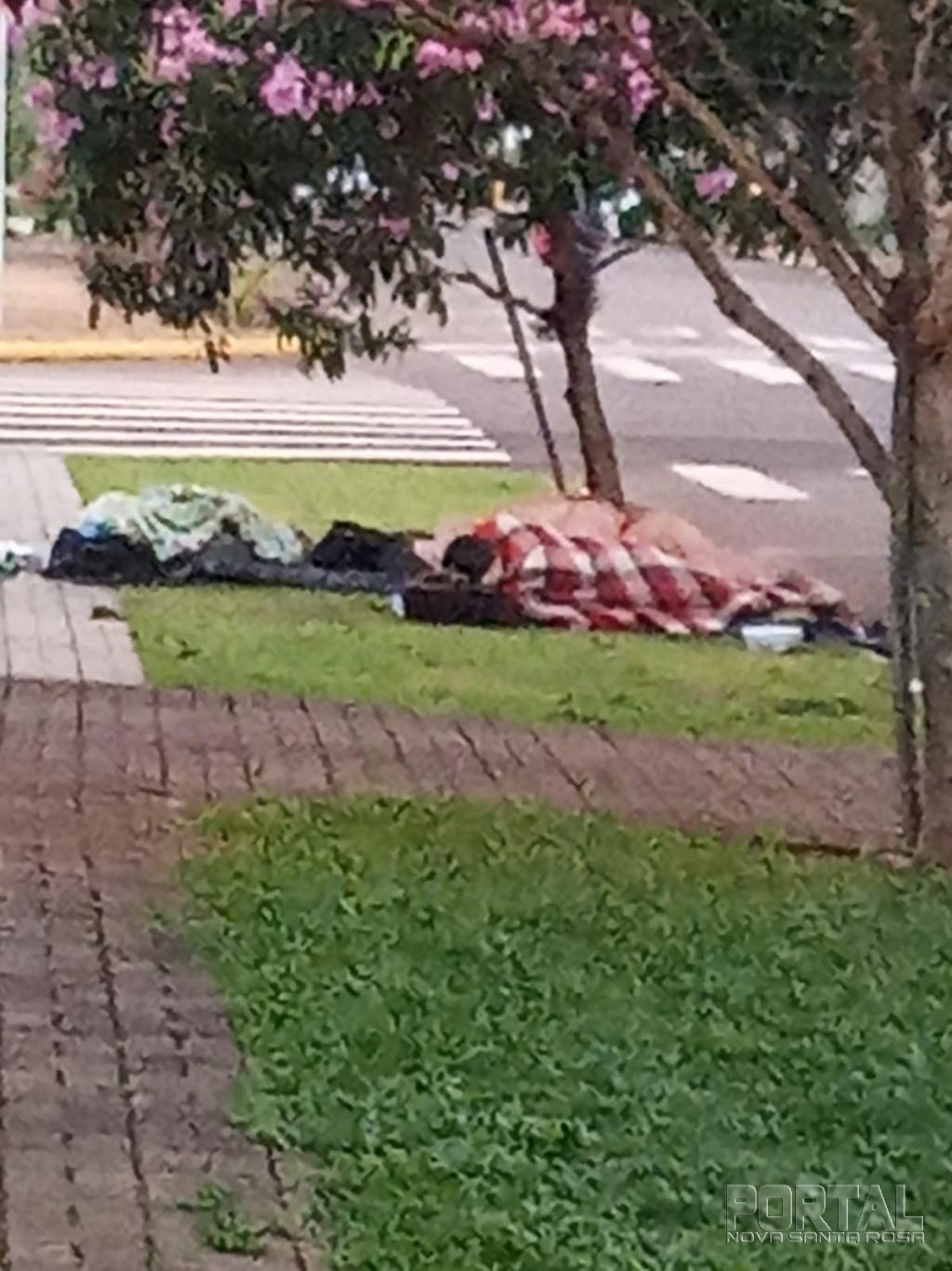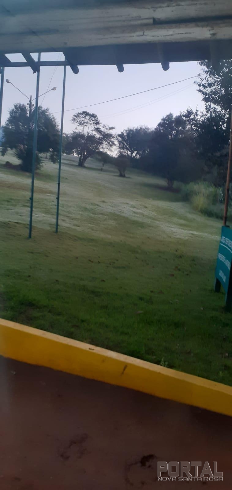 O Campo de futebol do São Roque amanheceu com uma camada de geada considerável, registrou outro internauta. Moradores de rua foram flagrados dormindo na calçada durante a madrugada.