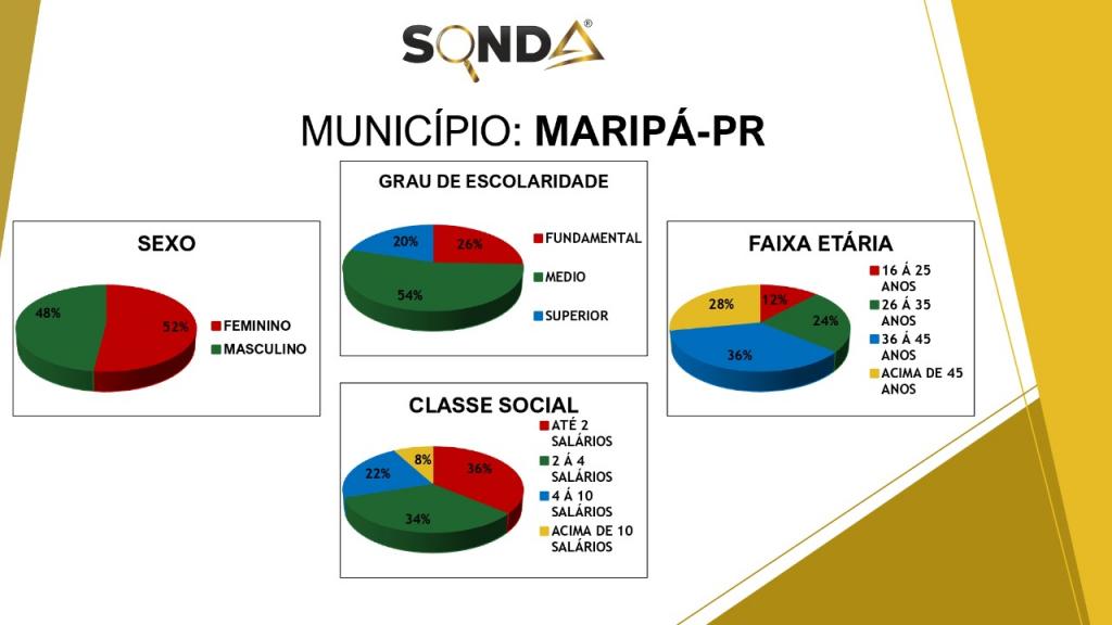 O Instituto Sonda - empresa de sondagem de gestores públicos e empresas – divulgou nesta sexta-feira (25) o resultado de uma pesquisa realizada em Maripá para identificar o grau de satisfação dos munícipes com a atual gestão municipal e os vereadores.