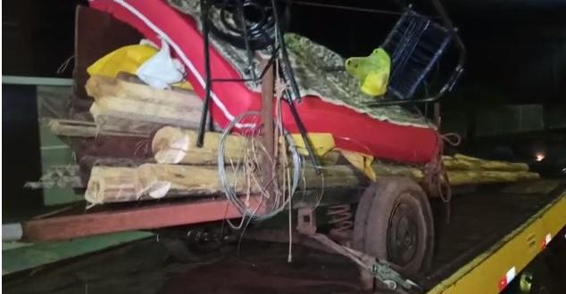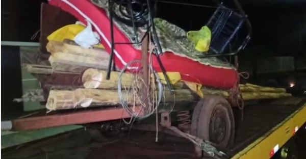Ainda segundo repassado, o condutor de um veículo foi abordado e com ele foram encontrados vários materiais que seriam utilizados para a invasão, dentre eles ferramentas de corte caibros de madeira, lonas, colchão, cobertor, telha, martelo, prego, cadeira, fogareiro, panelas, botijão de gás e entre outros materiais que estavam em uma carretinha puxada pelo veiculo.