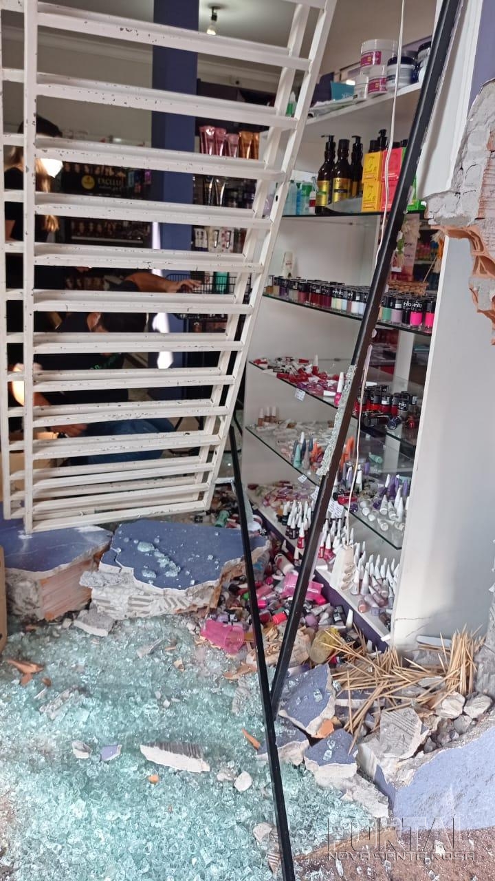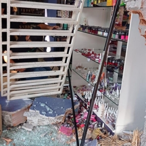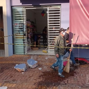 Com a batida o Gol quebrou a porta de vidro do estabelecimento comercial quebrando parte da parede tanto a mulher como o condutor do Gol foram socorridos com ferimentos e encaminhados para UPA para atendimento hospitalar.