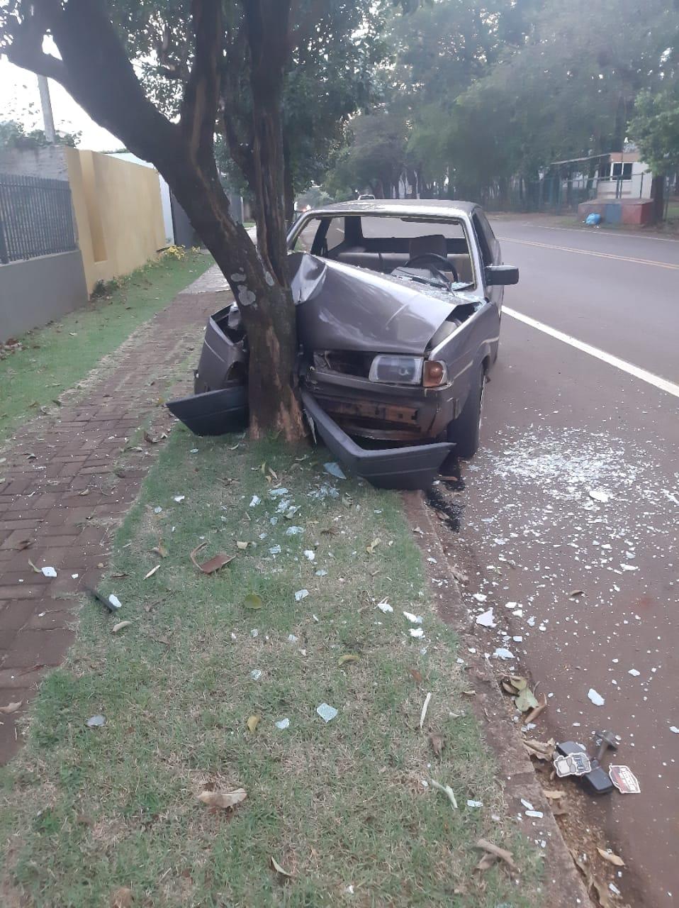 A colisão aconteceu na rua 24 de Junho, envolvendo um Gol, conforme informações, o condutor seguia pela rua quando perdeu o controle da direção e acabou colidindo contra uma árvore.