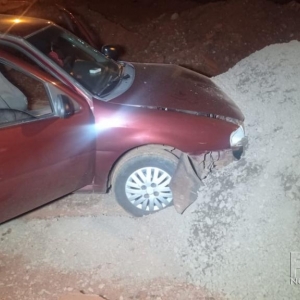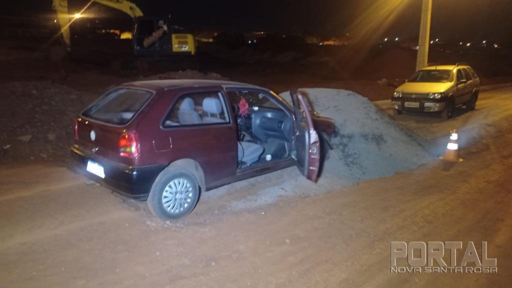 O Gol com placas Mercosul trafegava por volta das 21h30 deste sábado na rua Ângela Zanella no bairro Jardim das Orquídeas em Toledo na via que está em obras para fazer asfalto e no meio da pista tinha um monte de pedra brita e o condutor do veículo não percebeu a brita e acabou batendo nas pedras.