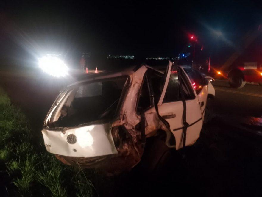 O acidente aconteceu próximo a ponte do rio Chopim e envolveu um VW/Gol que capotou e ficou completamente destruído.