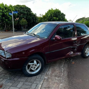 Após a batida, o Gol subiu na calçada e ainda atingiu levemente uma Fiat Strada estacionada.
