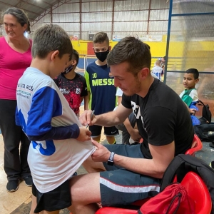 No encontro realizado com as crianças, o atleta de Nova Santa Rosa, conversou com as crianças sobre sua trajetória e explicou a importância da disciplina e persistência, além de distribuir muitos autógrafos. “Eles me olham como uma referência, por eu ter saído do mesmo lugar que eles. Isso é uma motivação para eu continuar, e eles devem continuar também acreditando nos seus sonhos”, fala Matheus. O nova-santa-rosense aproveitou para entregar duas camisas e um short do time Boavista. Uma das camisas em especial ao seu primeiro professor e incentivador, Edson Góis, como forma de agradecimento.