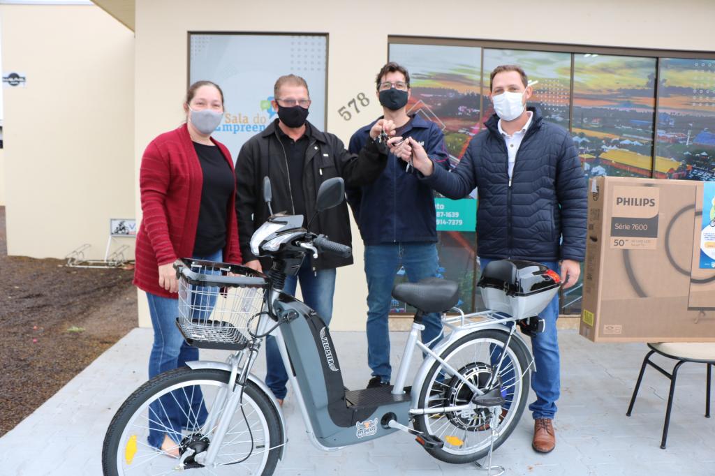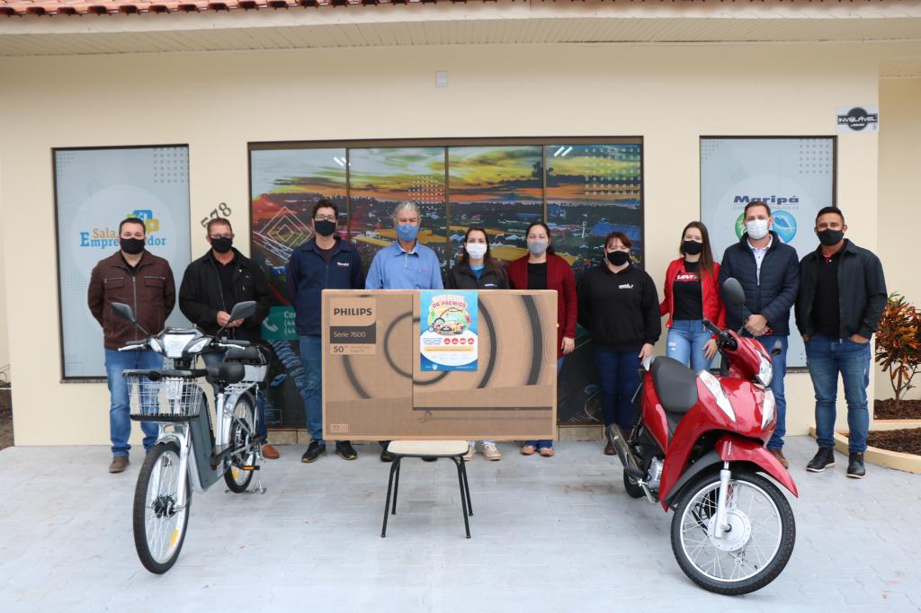 O Município de Maripá realizou na manhã desta quinta-feira (26), na Secretaria de Indústria, Comércio, Turismo e Desenvolvimento Econômico, a entrega da premiação aos ganhadores do 1º sorteio da campanha Comprar em Maripá Dá Prêmios, realizado no dia 11 de agosto. Foram eles: