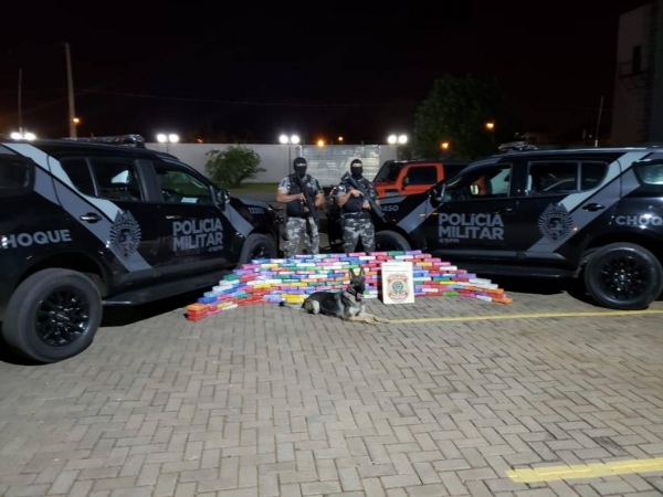 A Polícia Militar, através da equipe CHOQUE/CANIL, às 21h30 da ultima segunda-feira (30), efetuou apreensão de entorpecentes encontrado em carretas no Pq. Industrial em Maringá.