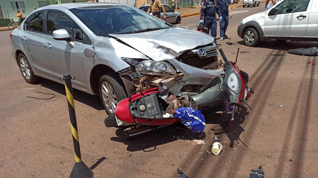 Um acidente de natureza grave foi registrado no início da tarde desta quinta-feira na avenida ministro Cirne Lima esquina com rua Laurindo mortelle no Jardim Coopagro em Toledo e envolveu dois carros e uma moto.