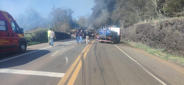 Ainda conforme a PRF, a pista precisou ser totalmente interditada em função da batida frontal, entre caminhões, seguida de incêndio. As causas do acidente ainda não foram informadas.