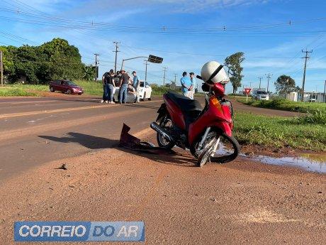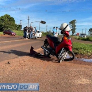 Duas motos se envolveram em um acidente de trânsito na rodovia PR-182, mais precisamente no trevo de acesso ao Jardim Diamante, na saída de Palotina para Toledo.
