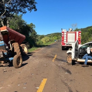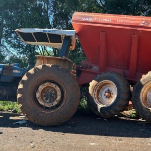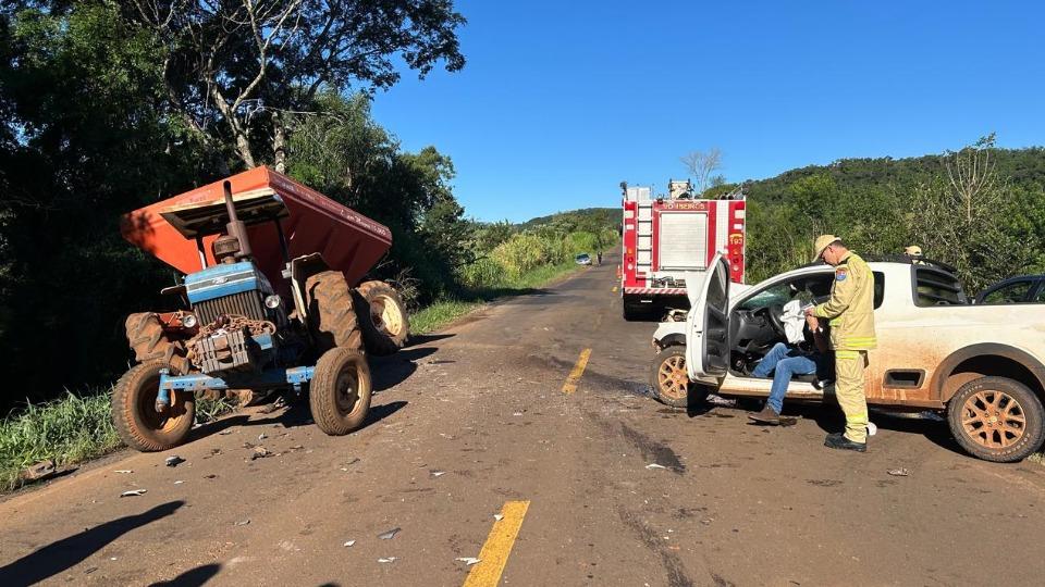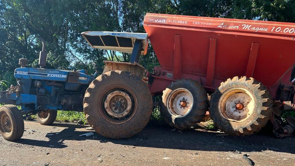 Segundo informações, os dois veículos seguiam pelo mesmo sentido, quando o trator tentou acessar uma estrada rural aconteceu a batida.