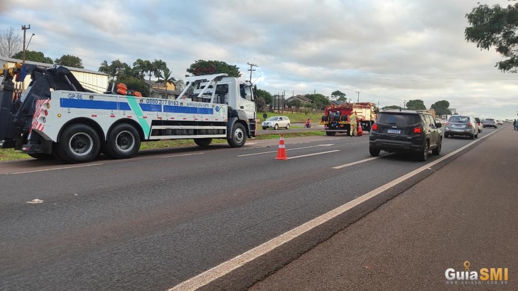 De acordo com informações apuradas no local, o motorista do caminhão, que seguia sentido Santa Terezinha de Itaipu, perdeu o controle da direção após um dos pneus do veículo estourar. O caminhão saiu da pista e acabou colidindo com um carro que estava no retorno da rodovia. A colisão foi tão forte que arrancou o rodado do caminhão.
