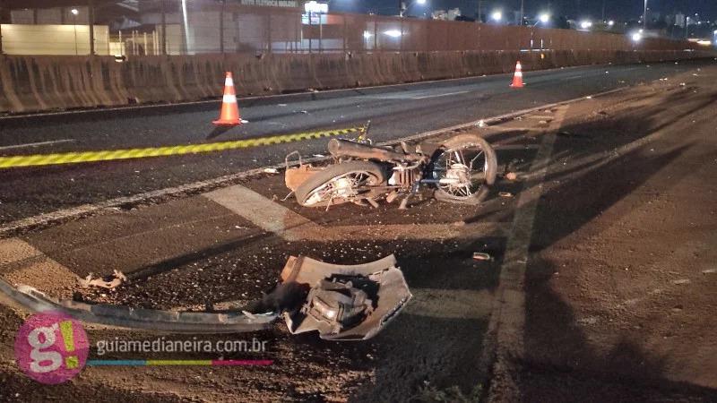 A colisão traseira envolveu um Hyundai Creta, com placas de Medianeira, que atingiu com grande força uma motocicleta com placa de Cascavel.