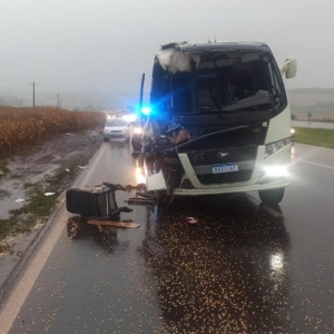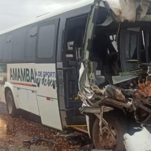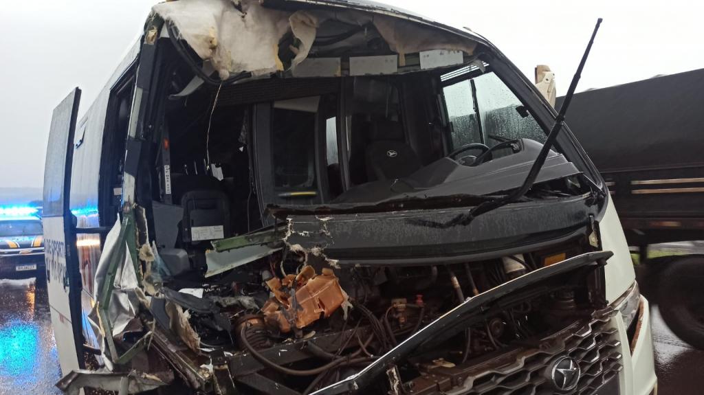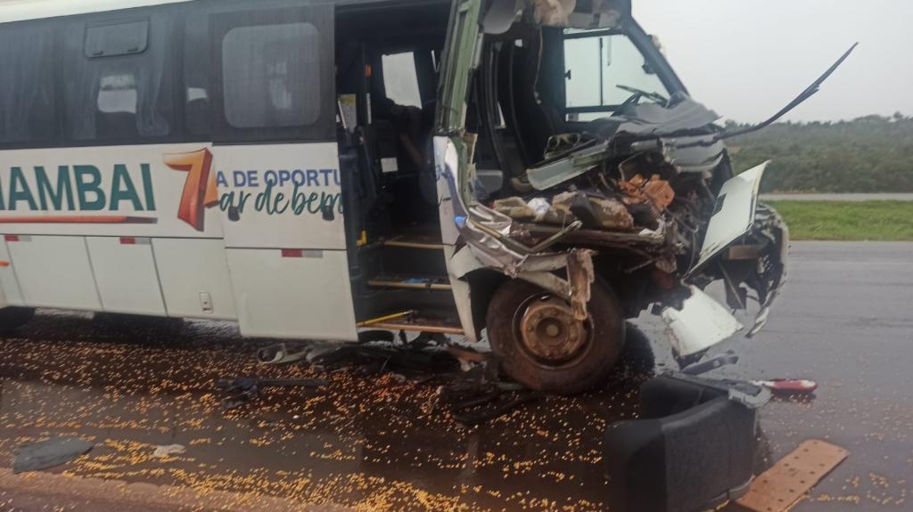 Grave acidente na BR 467 próximo ao distrito de Sede Alvorada envolveu ônibus da saúde do Mato Grosso do Sul e carreta, na manhã de quarta-feira (9). Veículo seguia com 14 pacientes para o tratamento de câncer em Cascavel e chovia no momento da situação.
