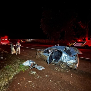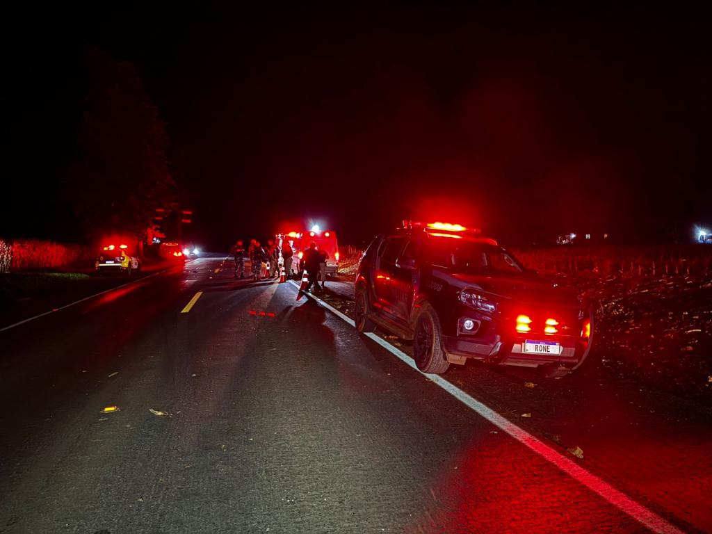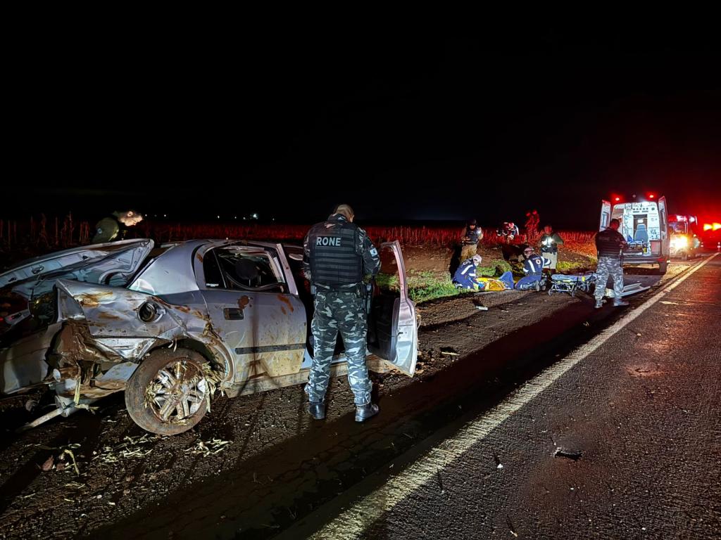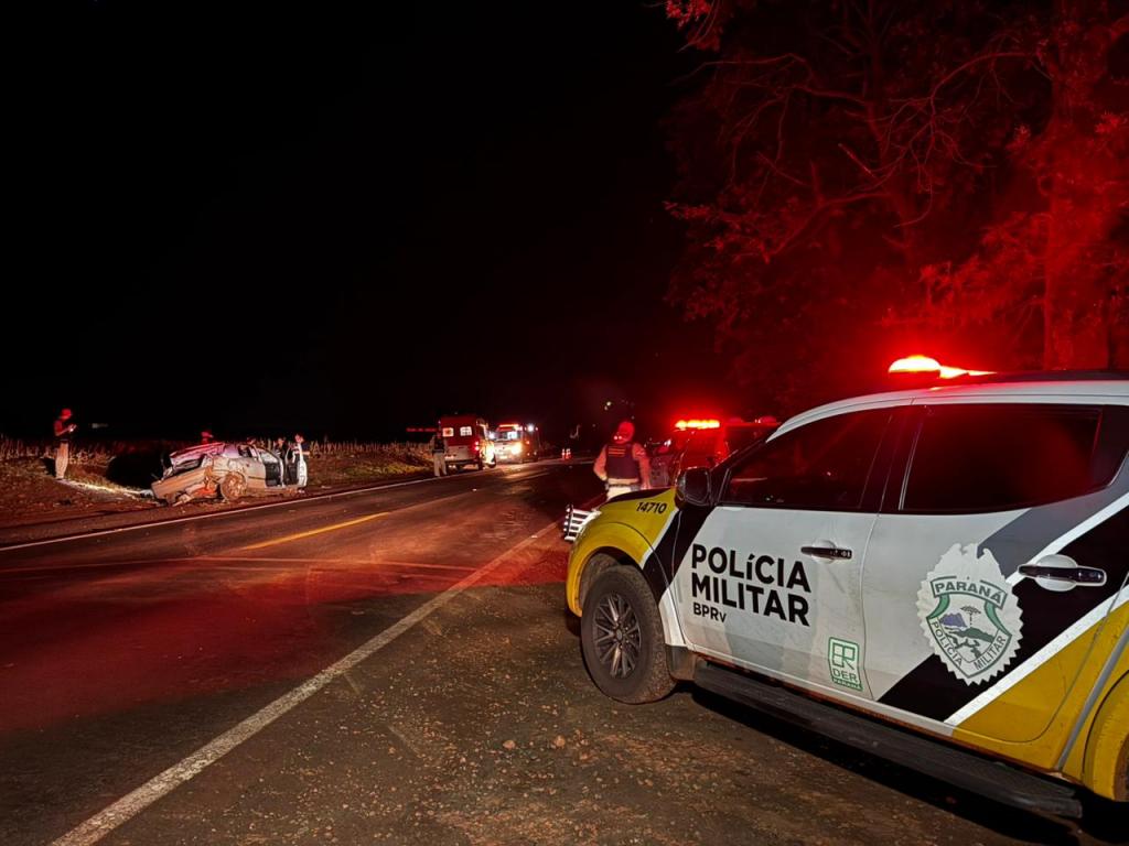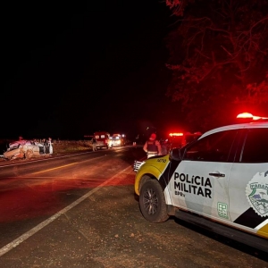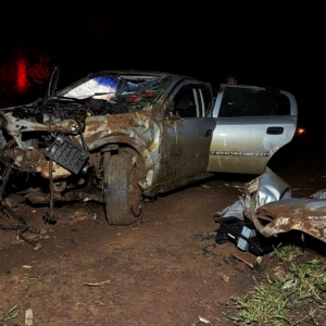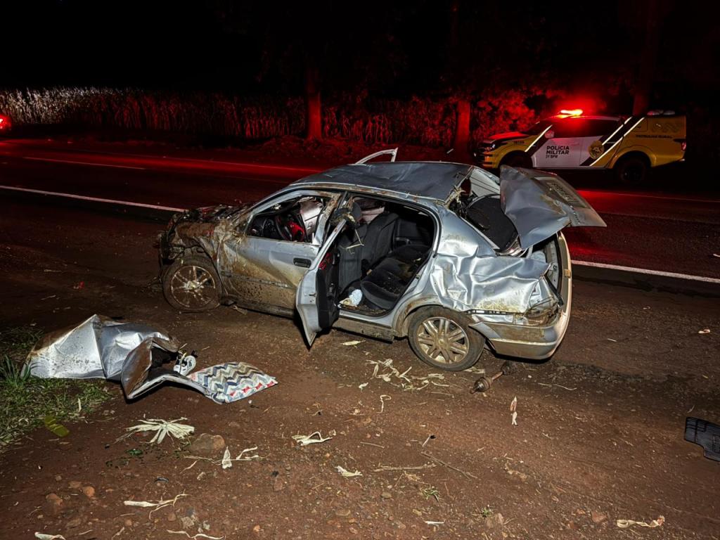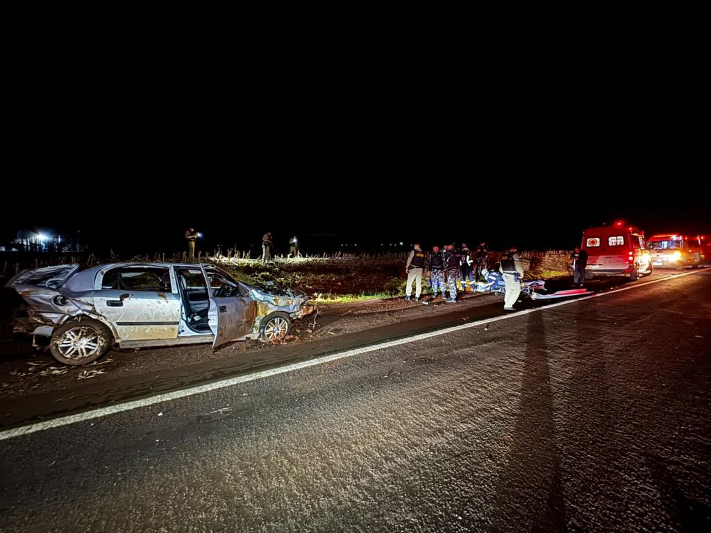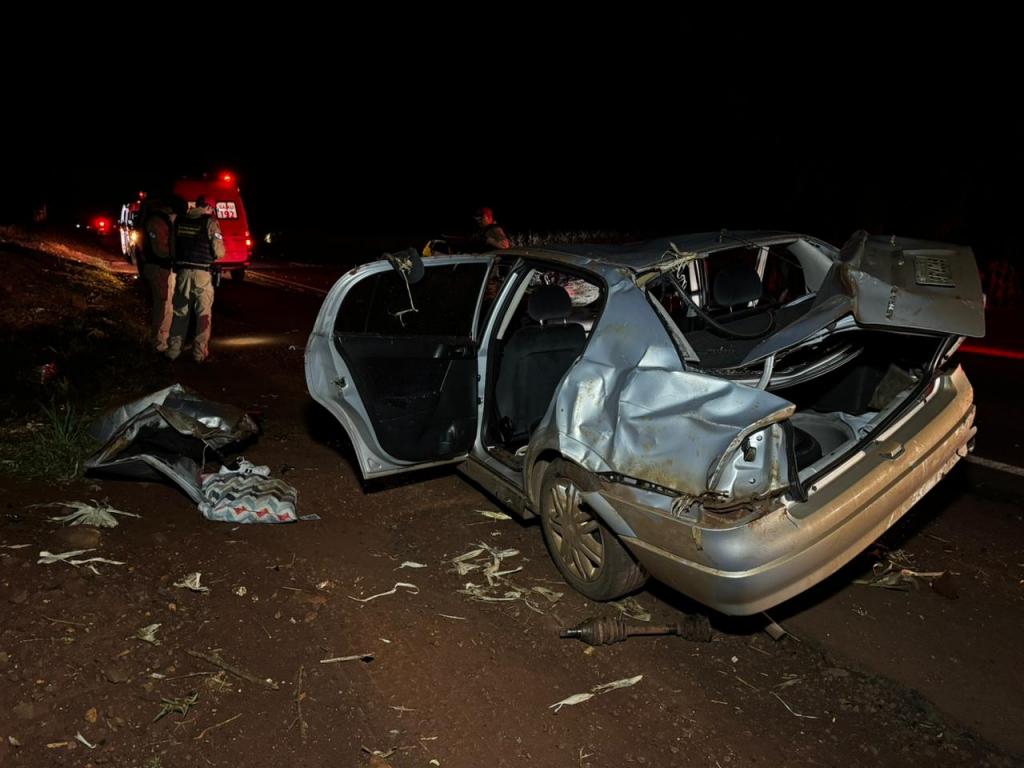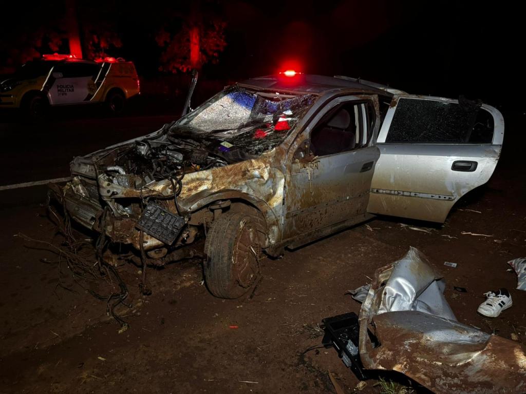 Dois homens morreram no final da noite deste sábado (28) em um grave acidente na rodovia PR-182 que liga Maripá a Palotina, nas proximidades do trevo de acesso a Nova Santa Rosa, logo após o posto de combustíveis. O acidente envolveu um veículo Astra com placas de Cascavel e três ocupantes, que capotou após uma tentativa de fuga de uma abordagem policial.