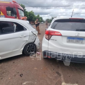 De acordo com as informações, o veículo Ká seguia pela Rua Mato Grosso, no sentido Bairro Ana Paula-centro, no cruzamento com a Rua Independência ele acabou atingindo o Renault Clio que ia em direção ao Trevo de Margarida. Com o impacto, o Ká rodou na pista e ambos os veículos desgovernados atingiram a HR-V que aguardava na Mato Grosso para atravessar a Rua Independência e indo em direção ao Bairro Ana Paula.