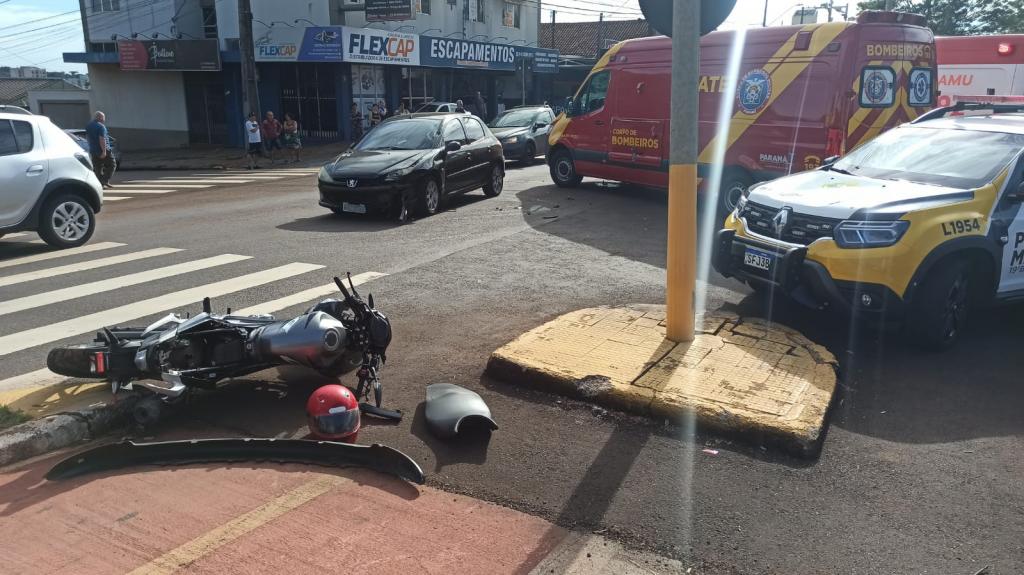 Na manhã desta quinta-feira (27), um acidente de natureza grave foi registrado no cruzamento da Rua São João com a Avenida Parigot de Souza, na área central de Toledo. A colisão envolveu uma motocicleta Honda Twister de 250 cilindradas, conduzida por um homem de 54 anos, e um veículo Peugeot modelo 206, conduzido por uma mulher.