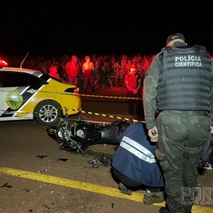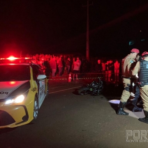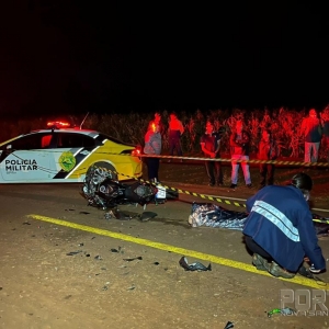 Uma grave colisão entre uma motocicleta e um trator com plantadeira aconteceu no início da noite desta sexta-feira (13), na Rodovia PR-589 que liga Nova Santa Rosa ao distrito de Novo Sarandi.