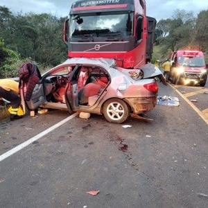 Uma grávida morreu em um acidente entre um carro e um caminhão na rodovia SC-157, entre Quilombo e Coronel Freitas, no estado de Santa Catarina. A jovem, de 25 anos, foi encontrada inconsciente no banco do passageiro. O veículo em que ela estava, colidiu lateralmente com o caminhão.