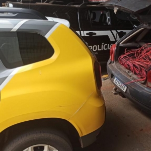 Durante a operação, dois homens, com idades entre 25 e 35 anos, foram presos em flagrante transportando uma grande quantidade de cabos de energia elétrica furtados de uma propriedade localizada na Linha São Salvador, zona rural do município.