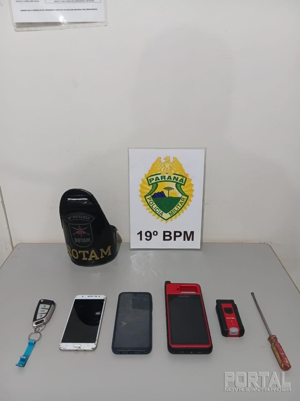 Na sequência, os dois homens se aproximaram da caminhonete e forçaram a porta com um objeto metálico, posteriormente identificado como uma chave de fenda. Após conseguirem acesso ao interior do veículo, a equipe da ROTAM, que já estava nas imediações, realizou a abordagem.