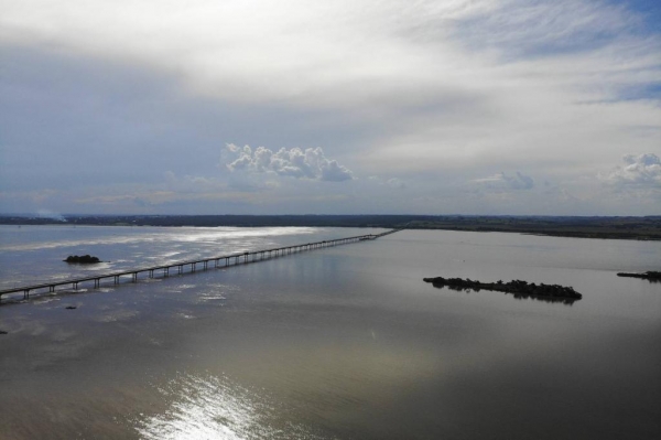 PONTE – Guaíra se prepara para modernizar a Ponte Ayrton Senna, que liga o município e o Paraná ao Mato Grosso do Sul. A intervenção contempla restauração (patologias, sinalização e dispositivos de segurança) do trecho de 3,6 quilômetros da ponte sobre o Rio Paraná, recuperação asfáltica de 1,1 quilômetro de acessos entre o fim do perímetro urbano de Guaíra e o início da ponte e substituição da iluminação (serão 134 novos postes fotovoltaicos autônomos).