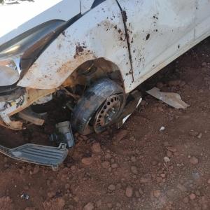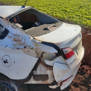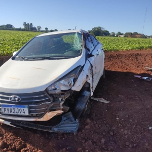 Um veículo Hyundai HB20 placas Mercosul de Nova Santa Rosa, ficou destruído após capotar por várias vezes na madrugada desta quarta-feira, na saída da cidade sentido a Novo Sarandi em Toledo.