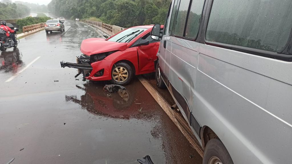 O Carro rodou e atingiu o guard rail, em seguida atingiu uma Van que trafegava no mesmo sentido.