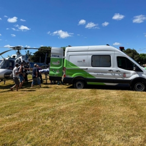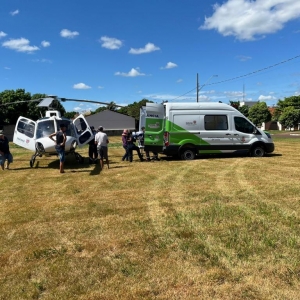 A ambulância municipal encaminhou o paciente do hospital Bom Pastor até o helicóptero no heliponto.