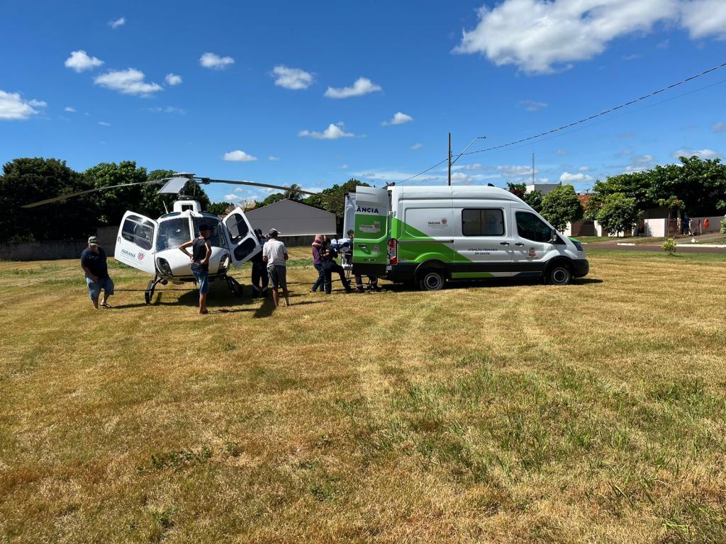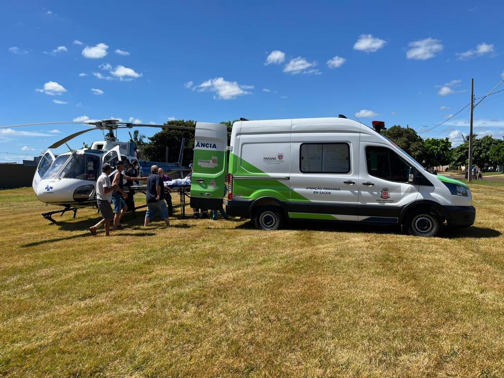 O helicóptero do Consamu foi acionado nesta manhã de sexta-feira (22), em Nova Santa Rosa, para realizar a transferência de um paciente.