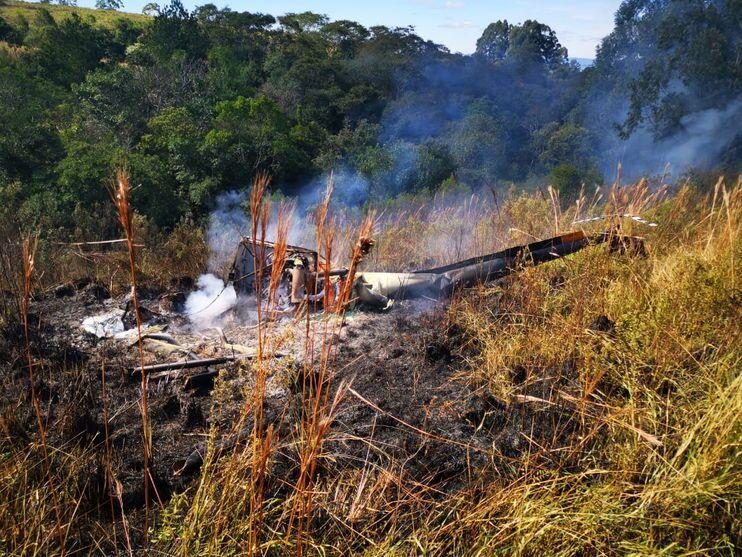 Após a queda o helicóptero pegou fogo. A polícia investiga para saber se o incêndio foi provocado.
