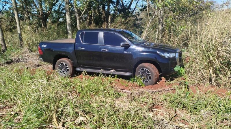 Já no início da tarde da quarta-feira, agricultores avistaram uma caminhonete Hilux preta em uma área de vegetação, na região de Cruzeirinho, interior de Guaíra.