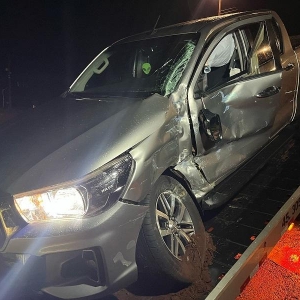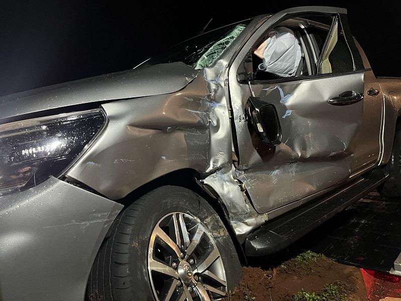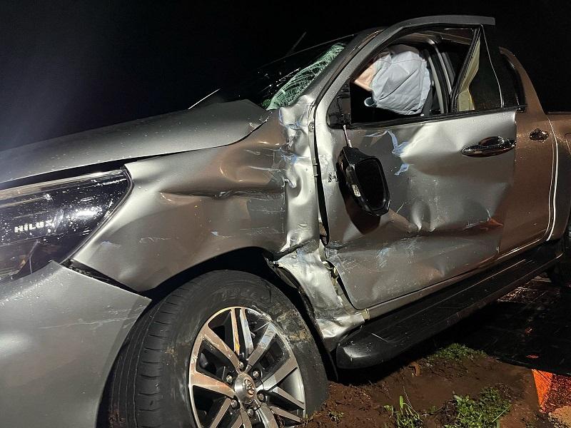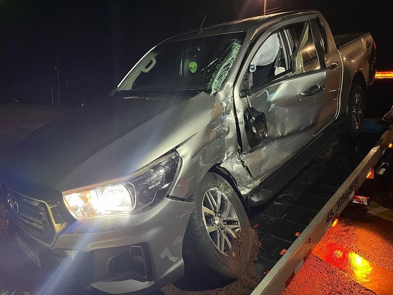 A caminhonete foi atingida na lateral do motorista sendo arrastada até o canteiro do trevo. A dinâmica do acidente não foi revelada.