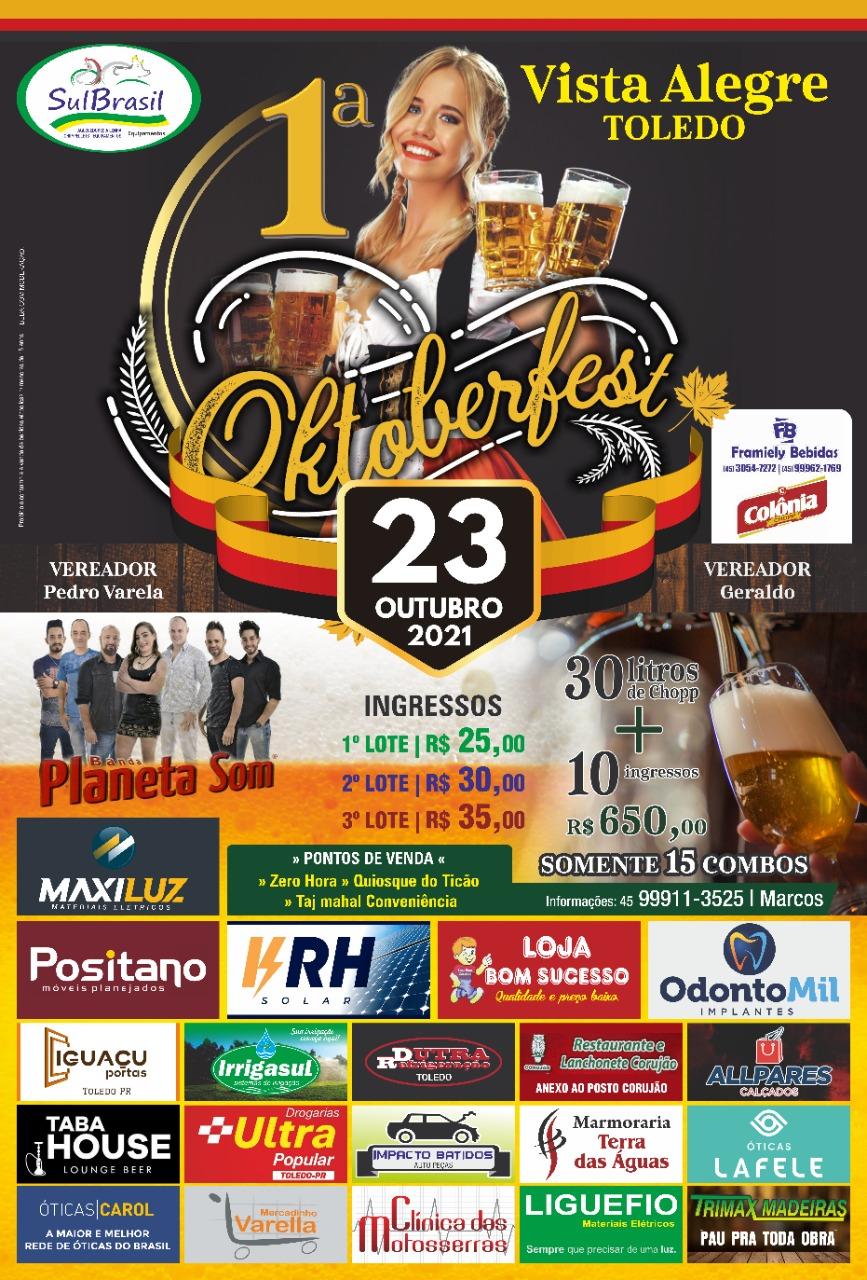 É hoje o grande dia da 1ª Oktober Fest em Vista Alegre, Toledo, entrada para Bom Princípio a partir das 22h30.