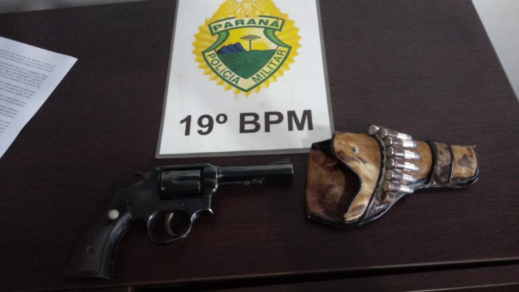 A PM foi acionada e visualizou um veículo suspeito, e em revista ao condutor nada de ilícito foi localizado, e na vistoria do veículo, foi encontrado embaixo do banco do passageiro, um revólver marca Taurus, calibre 38, capacidade de 6 tiros.