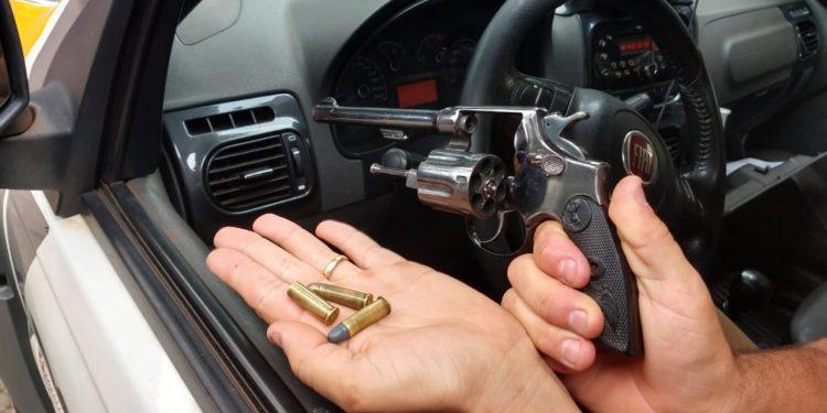 No local, os policiais encontram o homem conversando com uma mulher. Imediatamente as autoridades mandaram que ele se afastasse, momento em que puxou um revólver e encostou na cabeça da mulher.