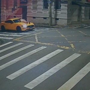 Imagens de câmeras de segurança registraram o momento em que o veículo de luxo trafegava com a vítima pendurada no capô, segurando nos limpadores do para-brisa. Ela chegou a se levantar e sentar sobre o carro, mas o motorista continua acelerando.