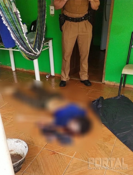 Ao chegar no endereço os policiais localizaram então com um corpo caído de bruços, na varanda da casa, com vários hematomas pela face, nos braços e costas, sendo identificado. Foi acionado a equipe do SAMU, da Polícia Civil e Científica, que constataram o óbito e fizeram o levantamento do local.