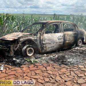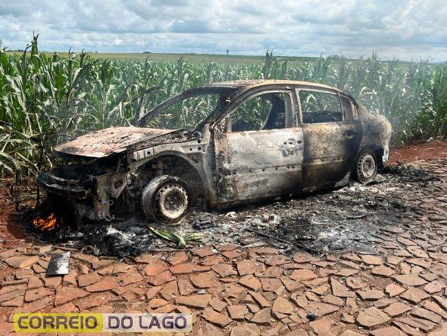 Nenhuma pessoa foi encontrada nas proximidades do veículo carbonizado.