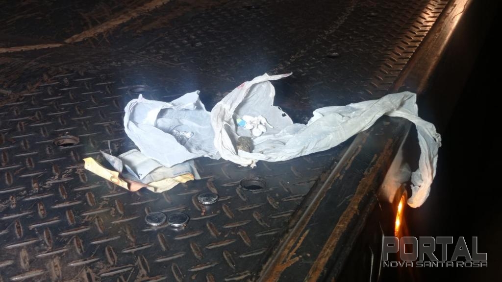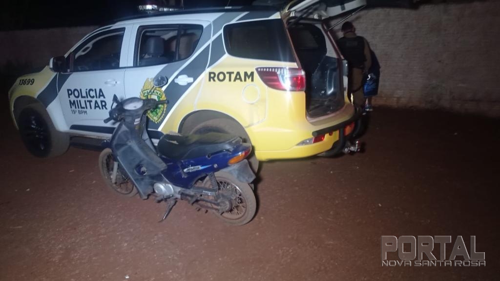 Foi encontrado ainda a quantia de 35,50 em dinheiro, em consulta ao sistema foi constatado que o homem de 44 anos possui um mandado de prisão, expedido pela vara da família e sucessões de Marechal Cândido Rondon, em buscas pelas dependências da boate, foi localizada no quarto dos fundos, uma motoneta de cor azul, sem placas. em consulta pelos chassis da referida moto, foi constatado um alerta de furto, ocorrido na data de 28/05/2021.