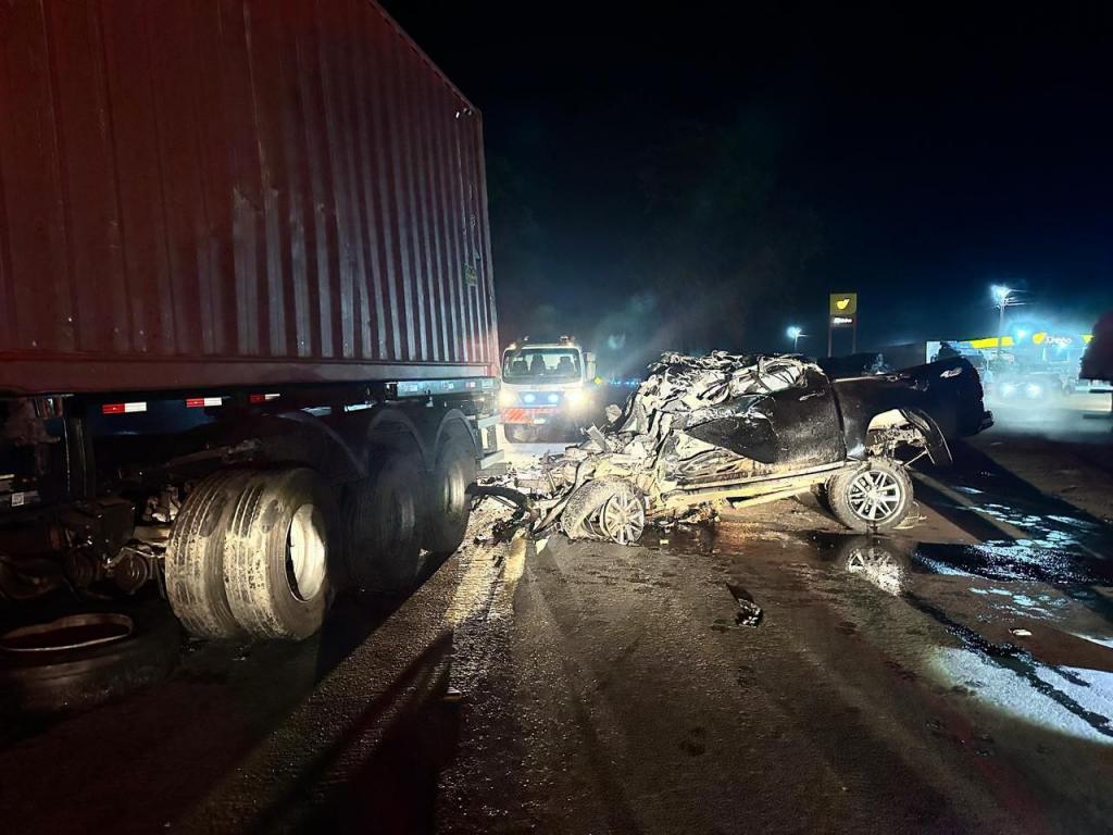 A colisão foi do tipo transversal, envolvendo uma Toyota Hilux com placas de Andirá (PR) e um veículo de carga da empresa CVC. De acordo com a Polícia Rodoviária Federal, o condutor da Hilux não resistiu aos ferimentos e morreu no local.